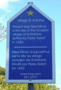 New Minas was founded in the early 1700s by Acadians from the Grand Pre area, the largest of the settlements known as Les Mines or Minas after the French copper mines explored at Cape d’Or at the entrance to the Minas Basin in the 1600s. As the Minas settlement grew, families moved westward up the Cornwallis River and founded a new settlement which came to be known as “New Minas”. The Acadian settlement was built beside a tidal island in the bend of the river, later known as Oak Island. They repeated the pattern of the Grand Pre settlement by connecting dykes to Oak Island to turn tidal marshland into productive farmland. The settlement grew to include a mill, chapel and burial ground at Oak Island. However the Acadians were expelled and the settlement was destroyed during the Bay of Fundy Campaign of the Acadian Expulsion in 1755. New England Planters resettled the area in 1760s as part of Horton Township but built their farms further from the river along the Old Post Road, later Nova Scotia’s Highway No. 1.